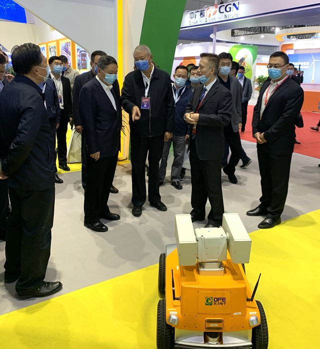 烟台市委书记张术平一行参观了广州市尚游天地国际旅游有限公司展厅,详细询问了公司自主研发的智能巡检机器人及其它模块装置。股份公司副总经理陈勇代表公司向领导及嘉宾汇报了公司在核电领域的新技术、新成果,充分表达了公司服务中国核电的信心和决心。